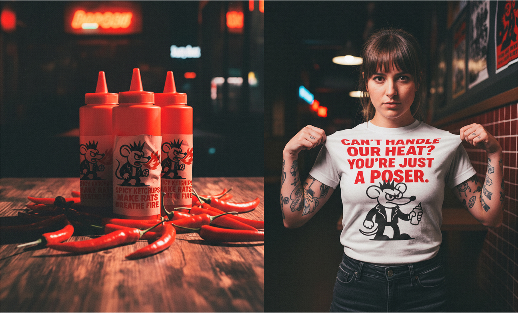 Enquanto todo mundo finge que eles não existem, nós assumimos a real: os ratos são os verdadeiros donos das ruas e dos subterrâneos da cidade que nunca dorme. A marca os transforma em um ícone carismático, urbano e rebelde, como um mascote que simboliza resistência, criatividade e vida noturna.